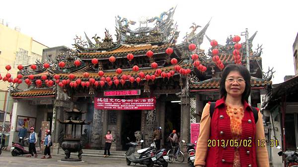 隔年媽祖回鑾是102.05.02。那天一早我們先到市區北邊的虎頭山公園,公園本身就是座小山,山下保留了一座台灣已少見的日本神社,山頂上建了一座台灣光復紀念碑,很有意思。歷經了族群血腥鬥爭,通霄人變的兼融並蓄。下山後再去搶飯擔,這次已無初時的新鮮感。