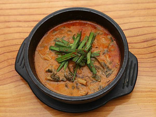 “泥鳅湯”是一道將泥鳅和蔬菜葉煮在一起的湯類料理。雖然也有將整條泥鳅放在鍋裏煮的店,但大部分店鋪提供的都是剔掉魚刺後加入大醬醃制的湯。盡管這樣一來泥鳅看起來會比較粗糙,但這種烹饪方法有效地減少了泥鳅本身的腥味,讓魚湯更加鮮美的同時還方便了吃魚的人。泥鳅本身富有很高的營養,同時對預防中暑有很顯著的效果,在夏天是非常受歡迎的料理。
