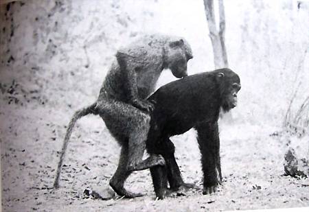 由於公猩猩本事不濟,發情的母猩猩除了每天在族群中不斷的雜交,接受群體裡每一隻公猩猩輪番上陣……也會主動向公猩猩求歡。在性事上,母猩猩極為主動,她如未能得到滿足,還會跑到兩個猩猩族群地盤交界處勾引鄰族的公猩猩。甚至,更令人吃驚的是,發情的母猩猩也會勾引公狒狒來滿足牠的需要。當然,公狒狒也會欣然上馬。珍古德在她「大地的窗口」書中就附了一張母猩猩和公狒狒交媾的畫面。所以如果把母猩猩和男人關在一起,雖然男人不會對母猩猩有性趣,但發情的母猩猩會主動向男人求歡,男人如果不肯配合,母猩猩會翻臉,翻臉的結果我想男人會遍體鱗傷,最後還是會乖乖就範。以母猩猩發情時高昂的性緻,你想她會不和自己的兒子交媾嗎?珍古德並不是個正統的生物學家,她還是個虛偽的女人。虛偽的人會祇講她想到講的,刻意避開她不喜歡的話題,甚至還會扯「善意」的謊言,珍古德並沒有如實地敘述也的觀察。