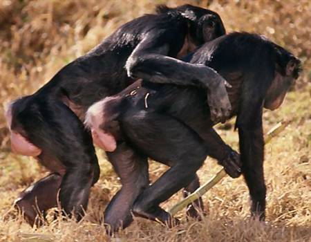 珍古德經過長期間的觀察,公猩猩每次性交時間祇有十到十五秒,總計抽插的動作最多十到十二下。這對母猩猩或女人而言根本是杯水車薪,於是母猩猩會和所有上門的公猩猩交媾,公猩猩不必爭風吃醋,祇要依著他們的社會階級排隊等著就好。在這點黑猩猩和人類最好的「朋友」狗狗倒是一致。