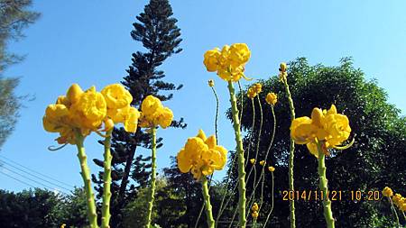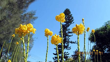 進園,一眼就看到一朵朵的黃花。美麗的黃花,有個奇怪的名字,叫翅果鐵刀木。