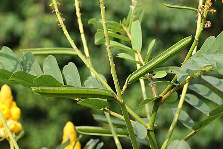 翅果鐵刀木(Ringworm Senna、Candle Bush、Iron-knife-fruit),豆科(Leguminosea)、鐵刀木屬(Senna),學名:Senna alata (Linn.) Roxb.。別名:翅莢決明(海南植物誌),有翅決明(中國主要植物圖說-豆科),翼柄決明、翼軸決明、翼柄旃那、對葉豆、印度黃槐、山扁豆、七金燭台。原產於衣索匹亞等熱帶非洲或熱帶美洲,1909年日人田代安定氏由印度引入台灣,1967 年顧元亮氏復由美國引入。