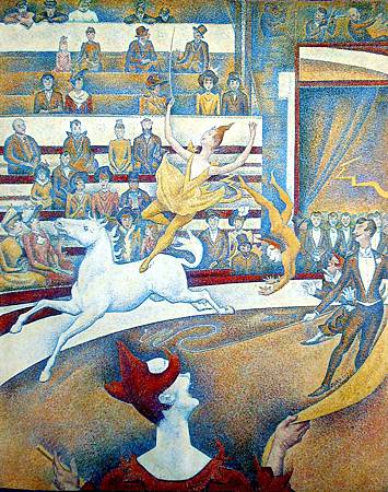 內向不擅交際的秀拉會因點畫法而成名實在是奇蹟。所謂點畫法其實就如同後世電視或電腦上的圖像是由無數的小色點組成的道理一樣,沒有創造力的秀拉以此來繪作,他的畫都是由層次漸進的色點構成,像美工,談不上藝術。自然,這種畫法不久就成了絕響。