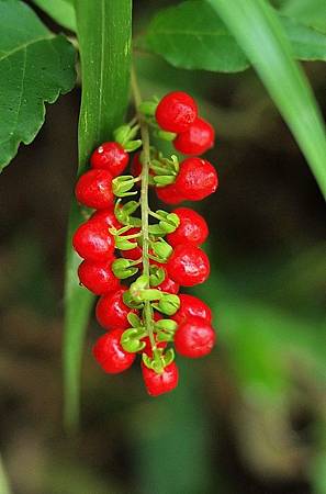 珊瑚珠(Pigeonberry,Rouge Plant),學名:Rivina humilis Linn.。商陸科(Phytolaccaceae)、珊瑚珠屬(Rivina)。別名:珊瑚株、珍珠一串紅、念珠珊瑚、數珠珊瑚。