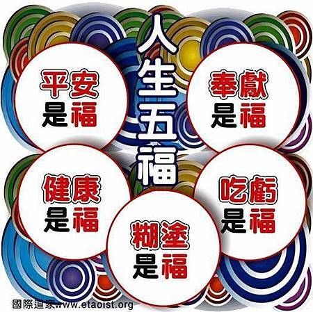 這位老兄心目中的五福是:「平安、健康、胡塗、吃虧和奉獻」