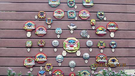回到路口,沿著安北路東行,德記洋行和樹屋在路左邊西門國小的後方,安平古堡和老街由路右邊古堡街進入約三分鐘可到售票大門。德記洋行與樹屋一體,入內參觀門票五十元,我們沒進去,就外觀拍照留念。沿洋行前的古堡街前行,左彎入古堡街90巷,巷口立著風獅的大型看板,巷底是鹽水溪的堤防,堤防上有斗大的「海頭」兩字,此地名為海頭社區,也有風獅擺飾,巷內人家亦能看風獅裝置,顯示此地先代居民與金門有相當的地緣關係。