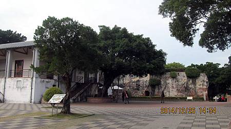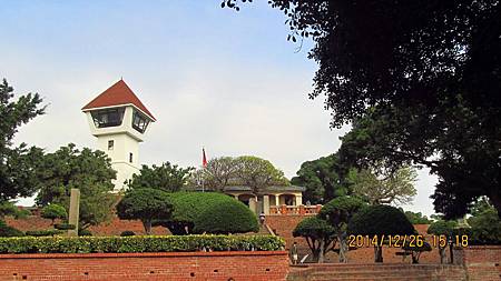 安平古堡,攝於103.12.26。紅頂高塔為國軍所建瞭望塔,洋房為日人所建。