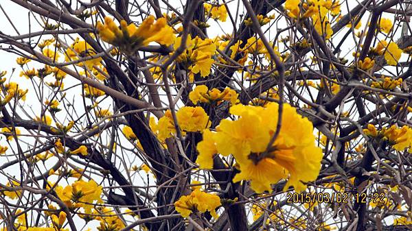 這次和淑惠來正好是黃花風鈴木的花期,市府當年配合橋的興建在橋的一端、景賢路兩旁種了成排黃花風鈴木,此時盛開,煞是好看。
