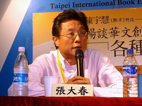 張大春(1957-),筆名大頭春,當代中文作家,祖籍山東濟南,生於台北市,成長於眷村。自幼由父親張東侯親授國學,畢業於成功高中、輔仁大學中文系學士、碩士,是歷史小說家高陽的關門弟子。妻葉美瑤曾任時報出版社副總編輯,現為新經典文化總編。兩人育有一子張容、一女張宜。