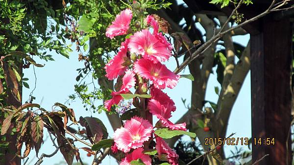 初次見到蜀葵生長在野地裡,應該是附近兩家庭園餐廳的植栽種子飄過去長出來的,野生的蜀葵沒有支撐固定,遇上大風大多會被吹折。後來看到養在公園的植株一旁都有竹桿幫她支撐。老頭想到有些反智、反社會的人生活在高科技的時代,享受著別人努力的成果,卻總喜歡選擇性的強調自然,不時嚷著當年山是如何的青,水是如何的藍,也不時恐嚇著大自然會反撲,然而真的如何嗎?人類的作為可以改善生活,不作為祇會永遠停留在莽昩,大自然的變化不會因為妳的作為或不作為而有所不同,老古人早在幾千年就知道「天地不仁,以萬物為芻狗」,人越進步就越堅強,受害就越少。然而,愚昧的人永遠喜歡拉後腿,卻自詡為環保,野心家更是搧風點火以便從中謀利,實在令人扼腕。