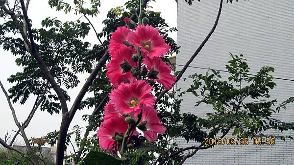 上個月去了好幾次內溝溪,每次都拍了別名一丈紅的蜀葵。其實蜀葵除了大紅,還有粉紅和白色,稱她一丈紅似乎以偏蓋全。初次見到蜀葵是退休後的隔年,和小賤坐遊覽車玩苗栗,在龍騰斷橋的野地看到高挺的植株正開著花,當時除了驚艷外,也佩服她細瘦的莖桿竟能長的比人高,而且花朵一朵接一朵的開上天。今年三月起遊覽車一日遊的行程強打台南學甲的蜀葵花田,大半個月裡幾乎隔兩天就有這行程,甚至天天有。前天在雅虎網頁也看到介紹彰化員林公園裡也有一大片蜀葵花田。