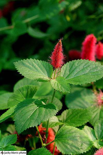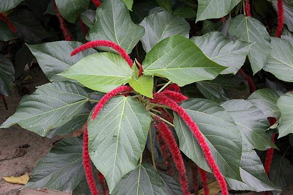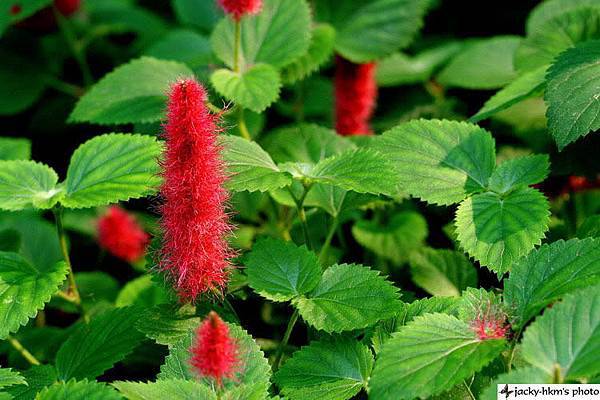 紅穗鐵莧:常綠灌木,葉片較大,鈍鋸齒緣,花序較長,懸垂向下。