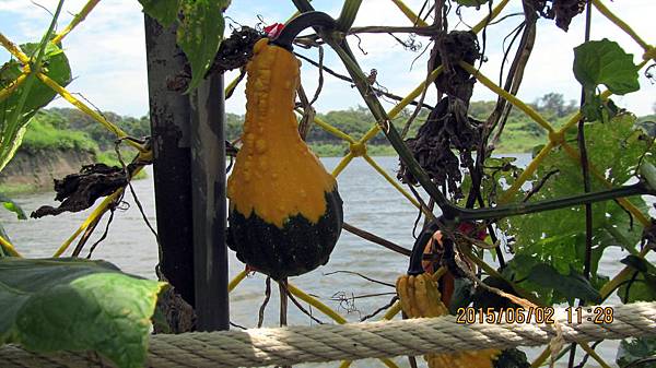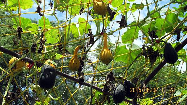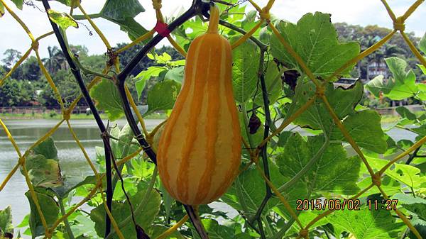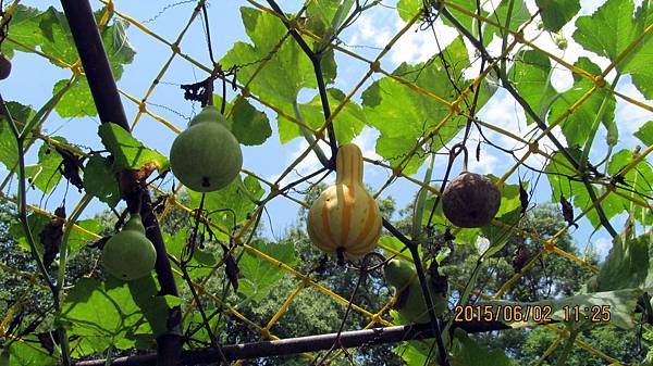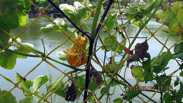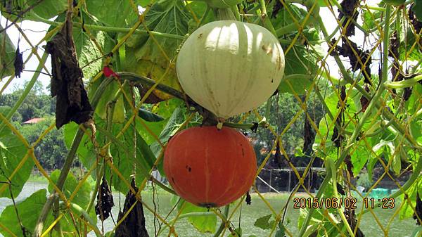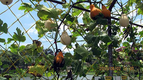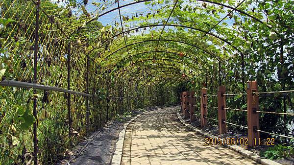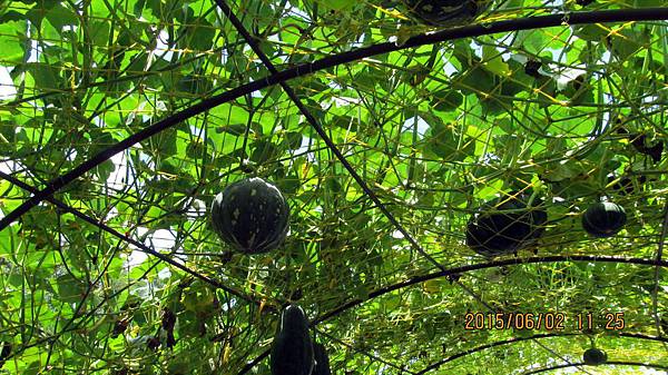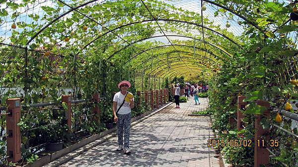 週一(104.06.01)和寵物參加蝶戀花公司的一日遊,行程主題是造橋南瓜節 南瓜隧道搶先看。景點包括:竹南啤酒廠、龍昇湖金瓜綠龍隧道、靈天禪寺。龍昇秘境、牛奶的故鄉、天賜佛院。行程中的龍昇湖、牛奶的故鄉和天賜佛道院都有南瓜隧道,牛奶的故鄉還有兩個,其中以龍昇湖的最長,內容也最豐富。參加蝶戀花的一日遊經濟又實惠,今天車資+保險+午餐便當=355元,兩個老人玩一天花不到一千元。一整天下來大概也走了四個多鐘頭的路,運動量相當夠,老人的晚上就好睡多了。囿於幅篇這天的遊記分為龍昇湖和牛奶的故鄉兩篇。