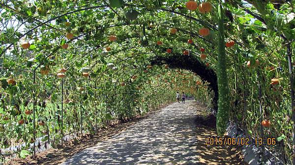 週一(103.06.01)和小賤參加蝶戀花公司的一日遊,行程主題是造橋南瓜節 南瓜隧道搶先看。景點包括:竹南啤酒廠、龍昇湖金瓜綠龍隧道、靈天禪寺。龍昇秘境、牛奶的故鄉、天賜佛院。行程中的龍昇湖、牛奶的故鄉和天賜佛道院都有南瓜隧道,牛奶的故鄉還有兩個,其中以龍昇湖的最長,內容也最豐富。