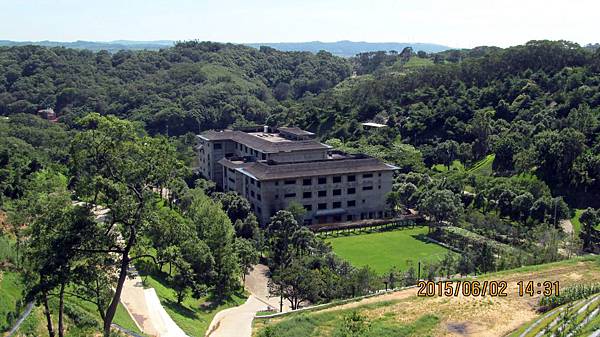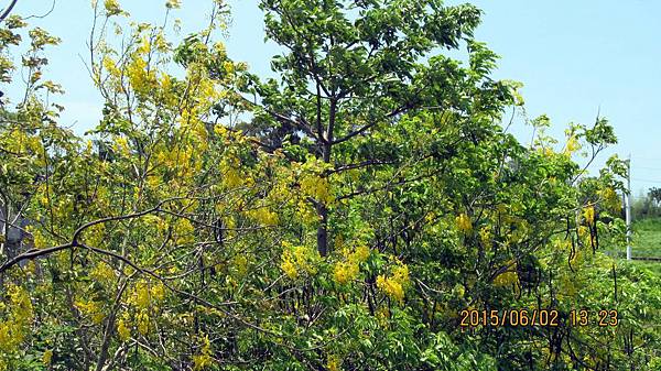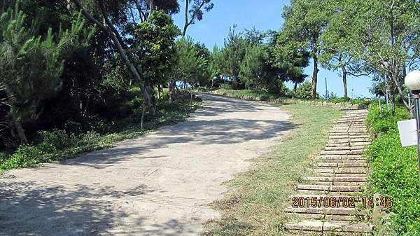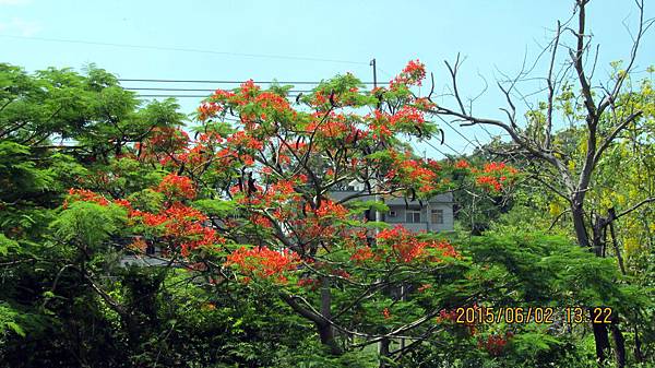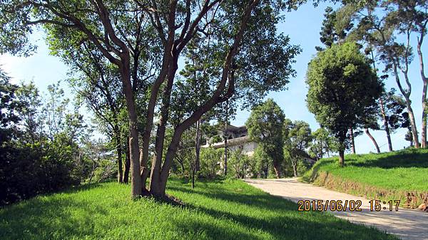園區建物後方有個小山丘,園方闢建一條環山步道,步道左端就是南瓜隧道,此時還沒有模樣,如果不是老板有意錯開時間,就是老板今年偷懶。山頭上有個展望台,一旁種了幾棵山櫻,當然,此時毫不起眼,如果不是去年三月曾來過不會注意到他們。今年園區四周看到不少鳳凰花和阿勃勒,此時正是開花的季節,不過並不壯觀,想必是這兩年剛種。