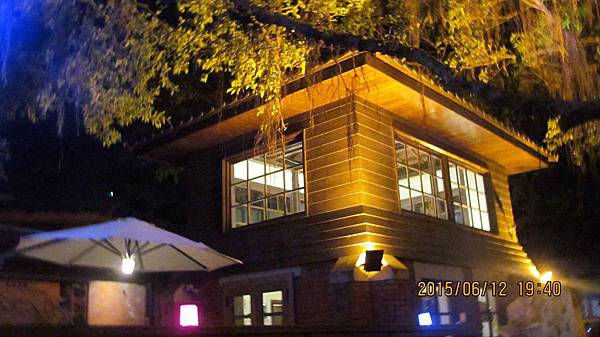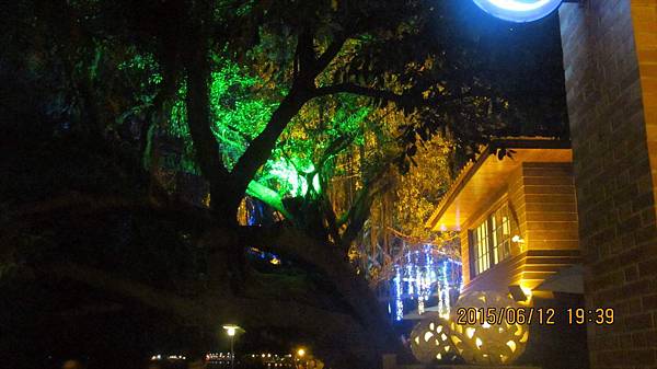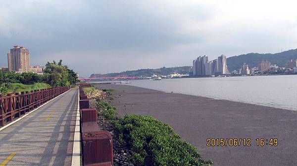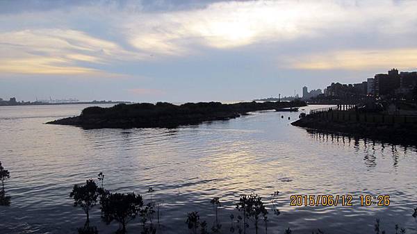 太陽下,我們走的不快,走了好久才到捷運紅樹林站。此後步道離開河濱,再走一陣子終於看到兵營,弱智的國防部在營區下立著斗大的告示牌,這裡是xx指揮部機動步三營,番號和兵力通通告訴人。過了兵營就到當年叫油庫的淡水文化園區。此時太陽己漸要消失,趕忙幫小賤人四處留影,然後兩人坐在咖啡館河旁露天坐位上看河景,今天沒夕陽。