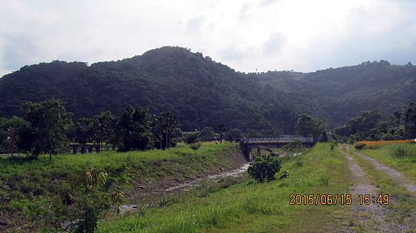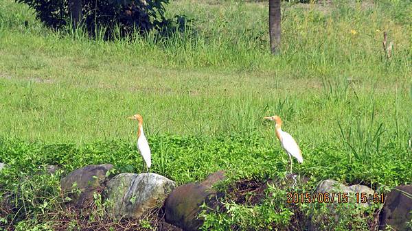 田間小溪中,一部挖土機正在濬疏河床。每當挖土機挖起河床爛泥時,幾隻黃頭鷺眼明手快的在挖土機手臂下覓食。夏日的艷陽下,遠山的襯託讓崙埤村的田野顯得甚是壯觀與美麗。