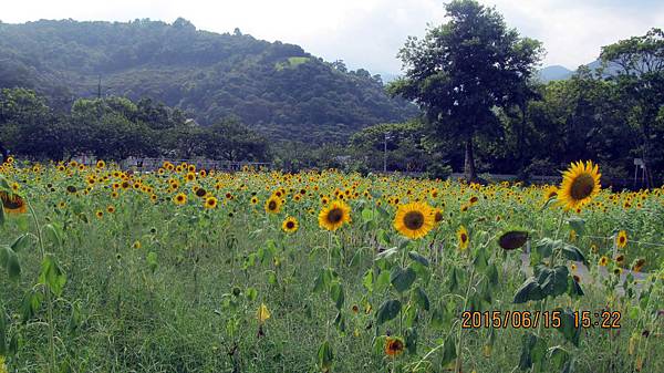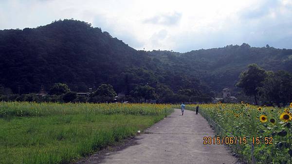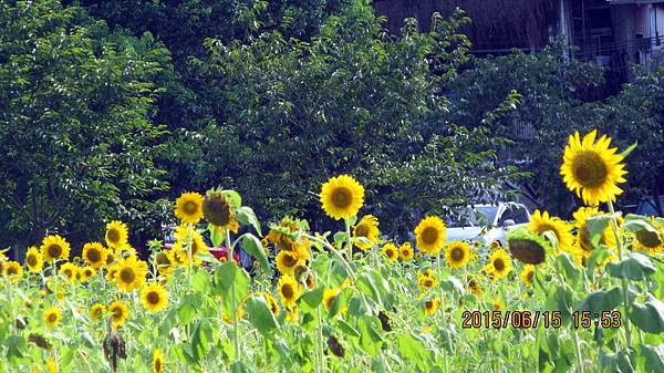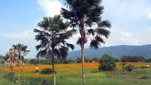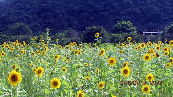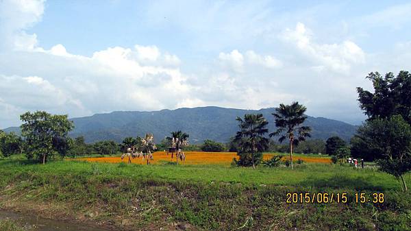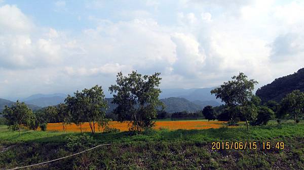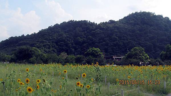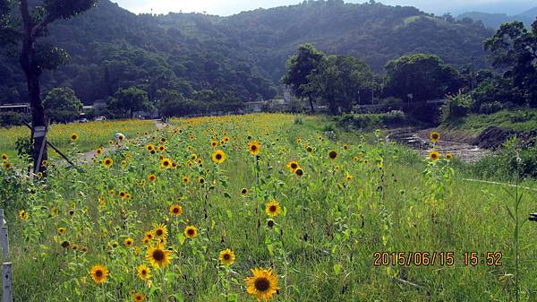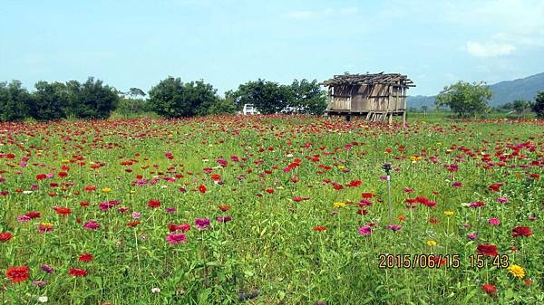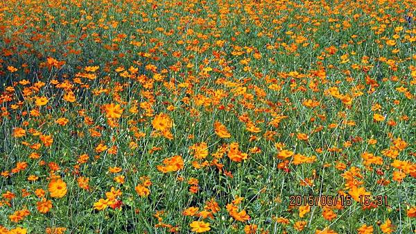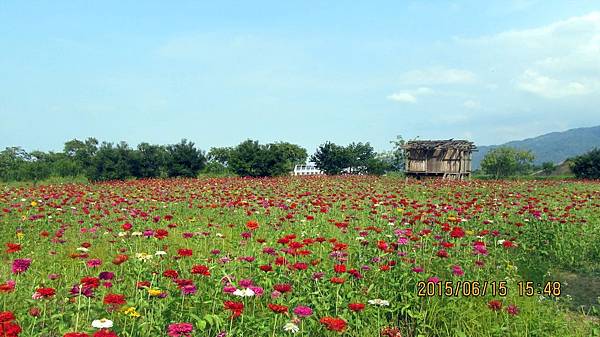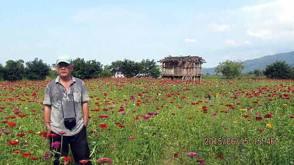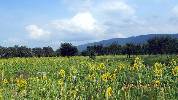 村子裡的小米已全數收割完畢,現場除了當年留下的景觀設施,其實看不到任何與小米有關的事物,原來的小米田上種了一大片向日葵花田、波斯菊花田,還有百日草花田,此時正盛開著。退休四年來,己看過不少花田,這些花田其實在別的地方都曾見過,但昨天卻有特別壯觀的感覺。仔細推敲,是面積較大?還是地形起伏?或是四周沒拉著醜陋的分隔線?有機會,其實妳得自己去看看。