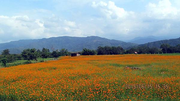 這不是小米田,此時小米已收割,這是大同鄉崙埤村的波斯菊田。
