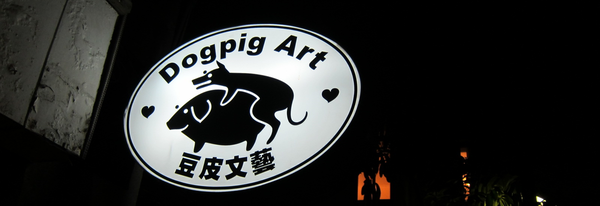 藝術是一種美的追求,然而人們的一張嘴自說自唱,卻可以讓人領會「不知所云」和「顛倒黑白」那兩句成語。當然,或許我不能瞭解某些人口中的藝術,但我特別要介紹他的店名和店招。豆皮文藝咖啡館在一樓騎樓,樓梯口掛了一塊橢圓形的店招,店招以白色為底,圖案是一隻黑狗騎在一隻灰藍色的肥豬身上,作交媾狀。店名「豆皮」也很有學問,豆皮不是素食者吃的豆皮,豆皮是英文dog & pig的簡稱。