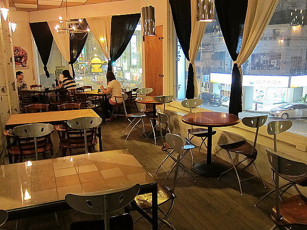 這兒提供一些簡單的餐點,像是淋上葡萄酒醬汁的新加坡雞肉或海鮮料理飯(或義大利麵)(210元);豬肉、牛肉、海鮮、羊肉或蛤蜊火鍋(160元)。若你想點份快餐或小吃,這兒也有Focaccia義大利式霍卡恰麵餅(60元);烤馬鈴薯(100元);加火腿及起司的法國麵包(120元)。飲料則有咖啡(60元至130元),茶及果汁(60元至160元);啤酒或雞尾酒(120元)。