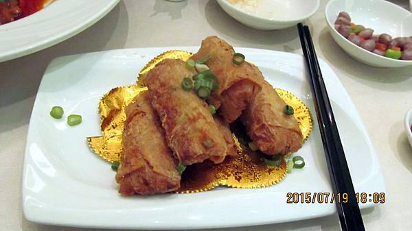 晚上的家庭聚餐是昨天才敲定的,兒子透過網路買了家附近彩蝶宴江浙餐廳的五人合菜餐券,NT1749,平均一人三百五,算來經濟實惠。彩蝶宴江浙餐廳位於忠孝東路五段,原春天百貨舊址,包括一、三、四樓及地下室(二樓是彭園),主要是做婚宴餐廳,永遠喜氣洋洋,今天也有新人宴客。
