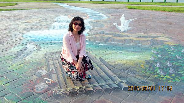 月初在部落格看到有人介紹社子「島頭公園」的三D彩繪,當時有點心動,在簡訊中和小賤提起,她看了也有意去走走。夏日裡那地方幾無遮蔭,由河口灌入的海風讓此地的樹木不容易生長,祇有一大片小草粧點成綠油油的大地。很美麗,但夏日的艷陽會曬昏人,所以祇適合太陽不大的清晨或傍晚去。兩人盤算著哪天做完愛愛的活後去走走。然而人算不如天算,上週二老頭貪花戀戰纏鬥太久,一不小心被小賤人取了精,當然就無法成行。週五一早先去植物園走了一趟,壓縮了愛愛的時間,祇做一回合兩人都意猶未盡,所以……還是沒去。隔天起的晚,午間問阿芬有沒有意思去走走,夫妻兩人就整裝出門。