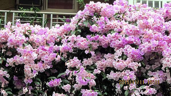 巷口那戶人家的蒜香藤原本在九月底已開始開花,誰知來了杜鵑颱風,颱風過後什麼也沒了。原本以為今年蒜香藤的花期就這樣過了。誰知幾天前又看到花苞,然後……不經意間竟已是一片花海。