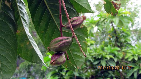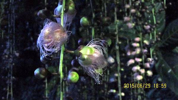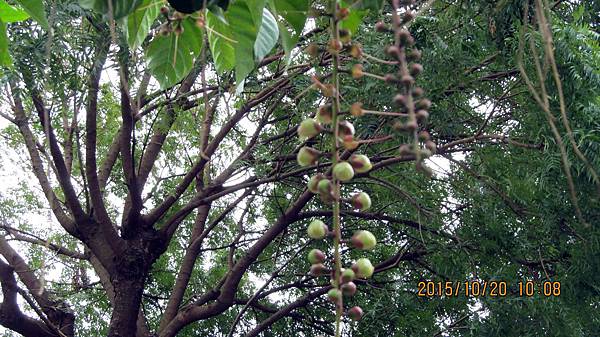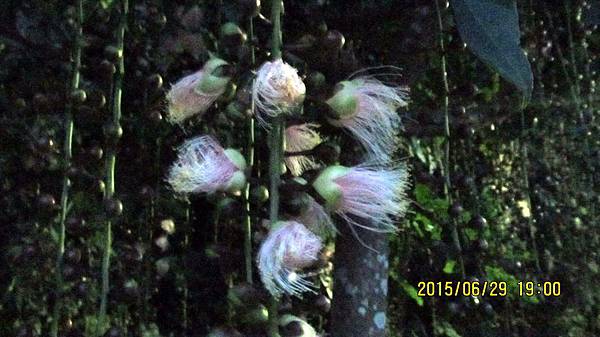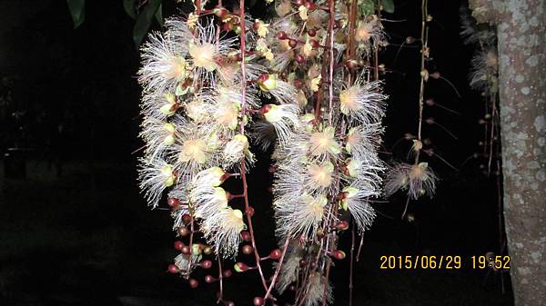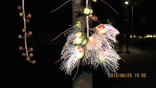 台灣富裕後,人們的價值標準也有所改變,幾年前原本受到鄙視的穗花棋盤腳開始變得相當熱門。夏秋之季的夜晚,人們爭相拿著相機對著開出紅白色花絲的穗花棋盤腳猛拍。當然,膚淺的人們在花季一過就再沒人會注意到她了。上個月在社子的台北花卉村不經意看到兩棵仍然帶著花苞的穗花棋盤腳老樹,樹齡相當老,所以樹也很高大,當時要不是看到地上的落花而抬頭,根本沒注意到她的存在。時節已進入冬初,沒想到老樹仍然不甘寂寞地綻開著美麗的花朵,但樹上也有不少果實。這幾年網上很多人拍穗花棋盤腳,卻少見人po她的果實,她的果實就像小一號的可可果,不曉得的人可能會誤以為是花苞。 104.11.12