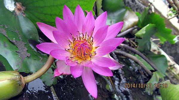家裡頂樓的睡蓮種了七、八年。那是當年還在上班時去合庫鹿港分行稽核,午休時逛市場買的。擔任稽核的五年間,鹿港去了兩次,從台北去鹿港的交通與住宿說來不算方便,所以兩次都自己開車下去。稽核的最後一天忍不住就買了。除了寒冬,小睡蓮幾乎終年開花,繁殖力也強,葉子枯了就會生根,接著長出紫褐色的水上葉,這幾年家裡繁殖了不少。除了原本買來時的花盆,還增加了一個大保麗龍盒子。家附近有好幾個菜市場,七百九十巷是早市,近午時就收市,攤販們的垃圾會集中堆在中坡南路的路口待運,垃圾堆裡每天都有不少裝魚貨的保麗龍盒子被丟棄,垃圾車準時在下午四點整來清運,我都在那之前去挑個大小適中又比較乾淨的回來換盆。除了草花,很多花越種越大,最後都得換成二十吋的花盆,接著就換成更大容量的保麗龍盒子。