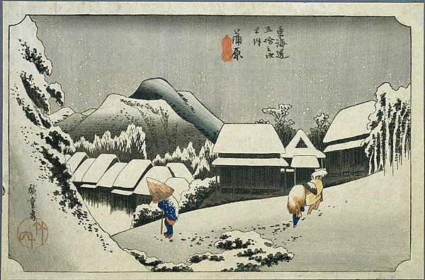 日本著名浮世繪 蒲原雪夜(東海道五十三次之一) 歌川廣重畫