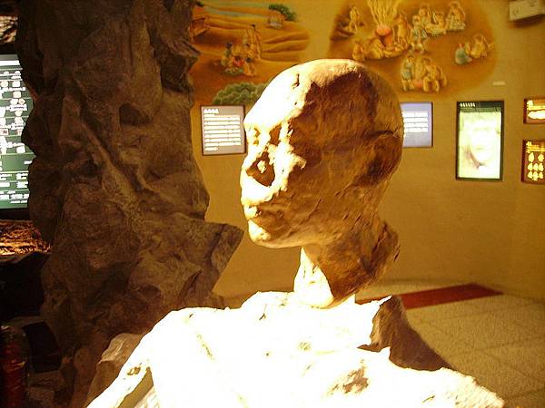 影片旁白:「在一此發現了1塊,距今30000年的人類化石。」