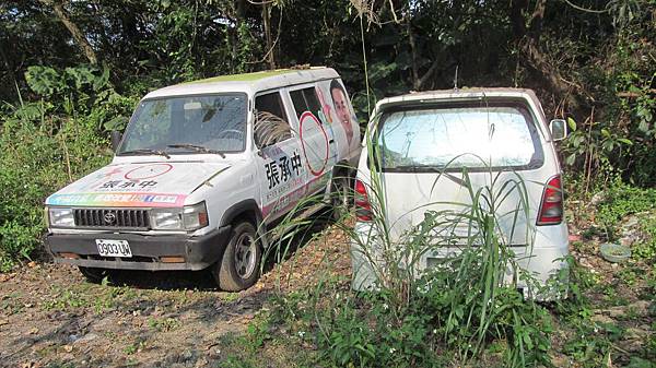 被棄置在虎山上的宣傳車(後記:106.02.14老頭上山,畫面左邊的宣傳車已移走)