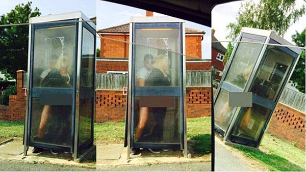 行動電話的普及,讓過去常見的電話亭慢慢消失其功能,但據《太陽報》報導,英國紐尼頓大馬路旁的一處電話亭,竟成為情侶的打砲勝地,日前就有一對夫妻白天駕車經過此地時,目擊這座電話亭裡,有一對飢渴的情侶,忘我地在透明的電話亭裡纏綿,讓這對夫妻大呼噁心,趕緊駛離現場。