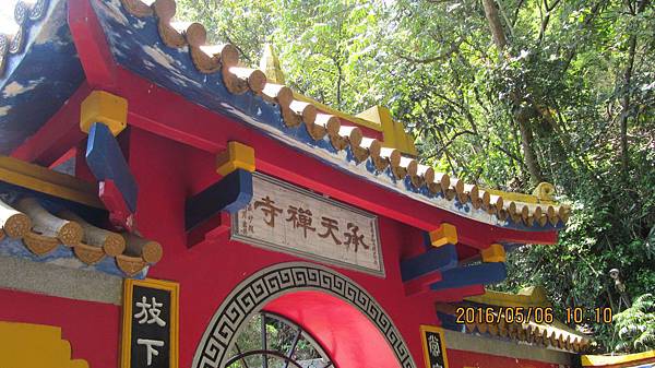 步道在禪寺前數百公尺終止,由步道上來後,左方是桐花公園,右方是承天禪寺。我們進入禪寺,一路走到另頭原本的山門,沿著拜山步道再下行幾百公尺,左轉迴向改走天上山系步道,一路幾乎淨是爬坡的石階,走著走著似乎沒有盡頭,我們沒走多久就折返,畢竟此時已近十一點,兩人得在午前後回去愛愛。此時南天母廣場公車站牌附近有叫客的計程車,每人30元,我和小賤人搭車下山,再轉捷運回到家都快一點了。