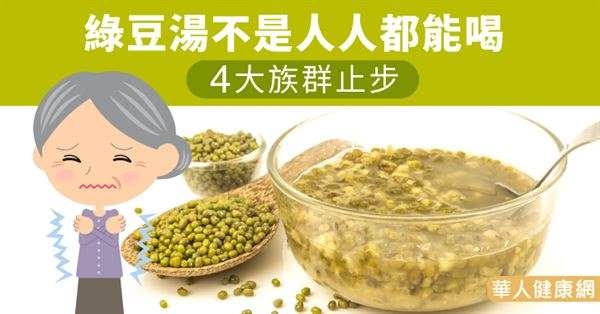 不過,中醫師賴睿昕提醒,綠豆湯並不是人人都能喝,最近門診出現不少因為喝綠豆湯導致身體越發虛弱的病例。由於綠豆性涼,若是屬於體質虛寒、慢性胃腸炎、腸胃消化功能較差等4個族群,喝綠豆湯可能會導致腹瀉,或是影響消化、系統免疫功能。
