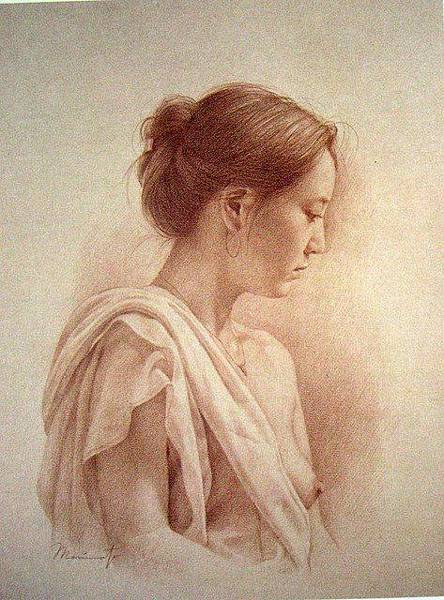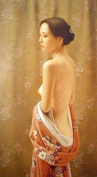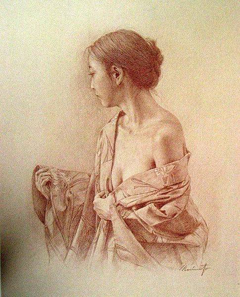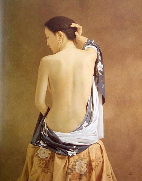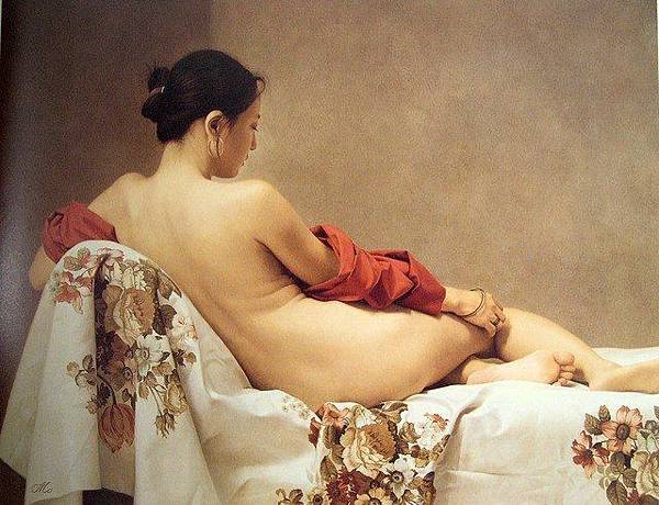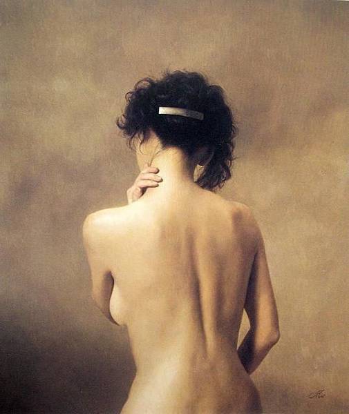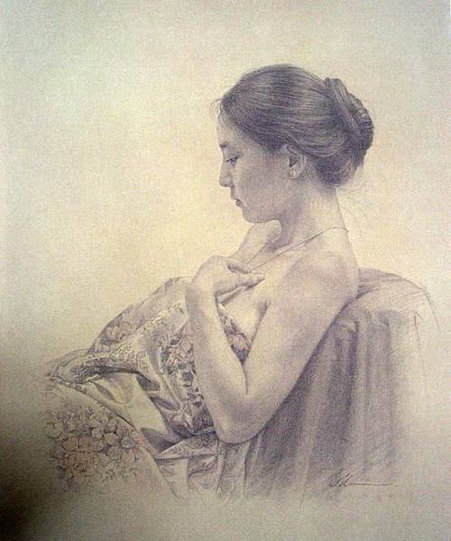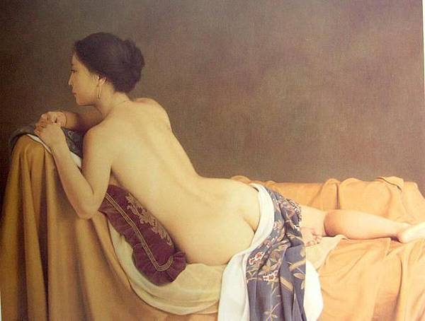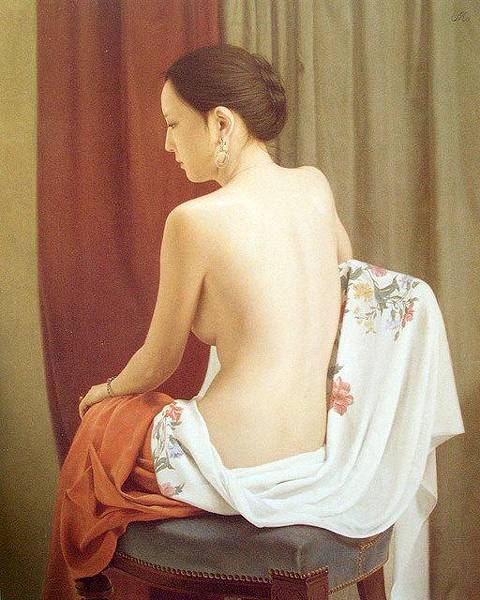 最初他喜愛靜物畫,尤其對光線直接照射在各種物體上的“表情”很感興趣,深入刻畫這些物件的質感、量感和空間感。後來,他找到了自己非常滿意的模特,在肖像畫和人體畫上深下功夫。在把握細節和整體的關係上,在畫面的取捨上,他的作品達到了完美協調的境地。