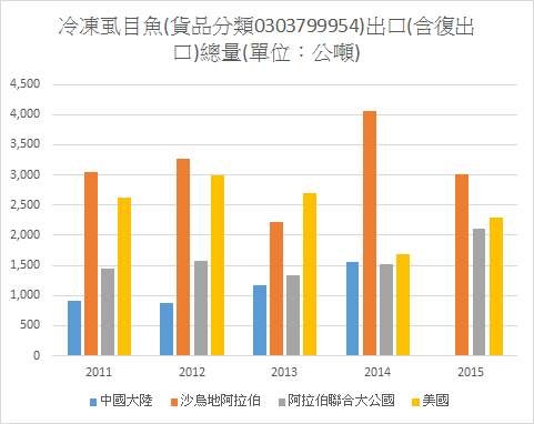我以台灣的關務署資料來計算,這兩個中東國家,從 2011 年開始,每年合計跟台灣進口的虱目魚數量,從中國的 3.8 倍,到 2014 年高達 7.2 倍。(見下表)