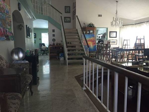 王家正門右側的邊門上懸掛著「Beware of Dog」的小牌,事發後,夫婦生前飼養的狗狗lata暫時被友人領回家照顧。透過正門的花窗毛玻璃,可依稀看到房子進門的大廳改造的畫室,桌椅、畫家、紙張、油彩,井然有序;走廊左邊整牆掛滿了不同年齡學生們的繪畫作品。主人對學生的關愛以及對生活的熱情,展現無遺。
