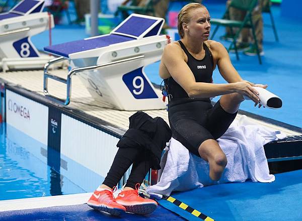 朗治在水中不戴義肢,她賽前賽後都要額外再花不少力氣換裝