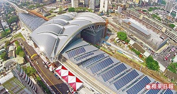 台中鐵路高架捷運化工程延宕,其中台中新站採綠建築設計,屋頂裝設太陽能板,外型猶如蝴蝶展翅