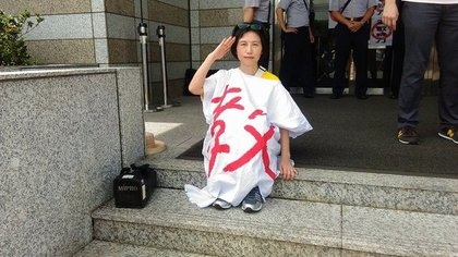 女校長徐慧芯拄著拐杖或是坐輪椅,到處參與年金改革抗議