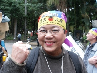 1994年反性騷擾大遊行中的何春蕤女士,當時虛歲44