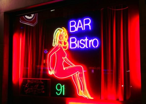 做生意的女郎們窗前亮著紅燈,時間一到即打開布幔,她們便穿著比基尼展露性感身材,坐在高腳椅上擺出撩人姿態。紅燈區就位在車站的舊城區,平時就仿若一個小鬧區,來這邊逛逛並不會受到指指點點的異樣眼光,就算不尋芳,街旁的夜店、情趣用品店或者餐廳也都能沾光,大賺觀光財。