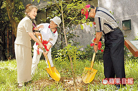 九十年前,三名日籍學者為台灣原生植物分類奠下基礎,九十年後,他們的子孫應農委會的「飲水思源」活動之邀也踏上這塊土地,在台北植物園內的「名人植物園」種下當年三名學者發現並命名的樹種。堪稱台灣植物分類始祖的金平亮三,約九十年前來台期間曾在溪頭種下一棵香杉,他的女兒森山高子(左一)今年過六旬,首度造訪溪頭,看見香杉已長成大樹,感覺好像父親正在對她說話一樣,感動不已。