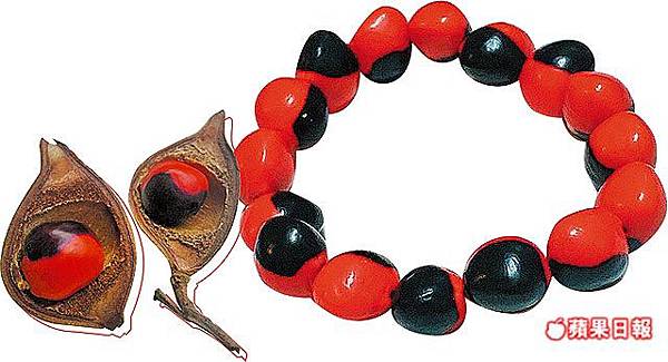 紅豆Ormosia希臘文原意乃頸飾之意,我把它做成吊飾、手鍊、項鍊來配戴,稀奇又罕有,常有人問我此種子是何物,還有人以為是著色上去的,可見此物之奇特!