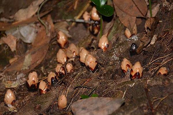 菱形奴草寄生在鋸葉長尾栲(單刺苦櫧)老樹根部,日本森林學者金平亮三93年前在南投縣蓮華池山區發現、發表以來,僅南投縣蓮華池、桃園縣東眼山發現其蹤跡,被評為「極危級」的珍稀植物,其如何繁殖、生態體系中扮演何種角色?依然是謎;蓮華池研究中心人員今年確認火燒栲根部也有菱形奴草蹤跡,將派員進行動態樣區清查。