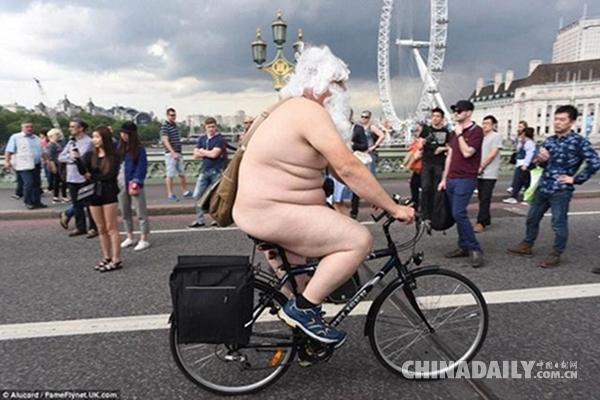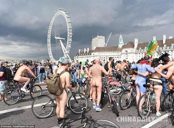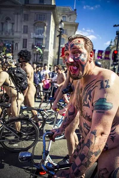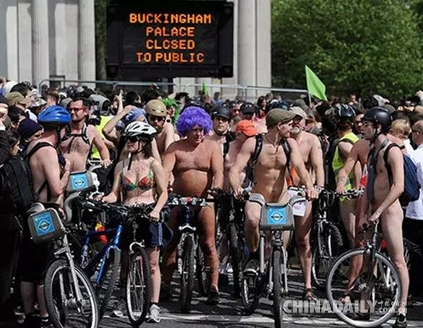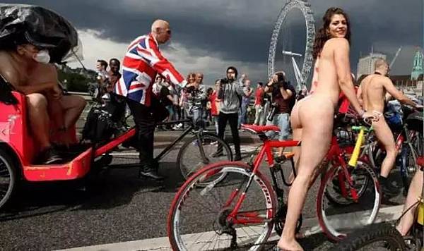 就在上個月,英國上百人湧上街頭,全裸參加一年一度的裸騎活動,目的是倡導綠色出行,反對汽車文化。萬萬沒想到,這次活動正好和英國女王90大壽撞車了,當天的倫敦可謂是熱鬧非凡,春光乍泄。