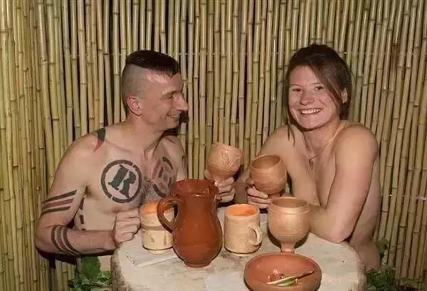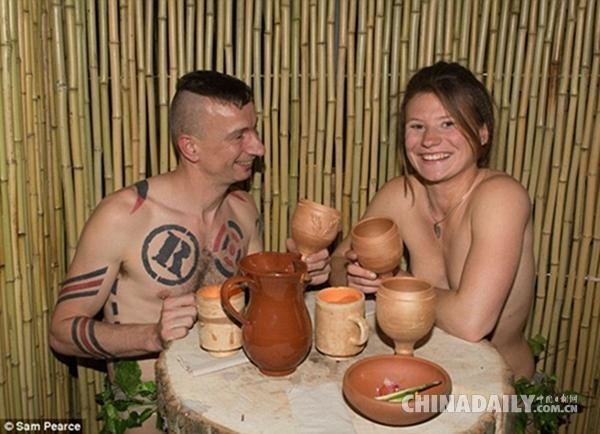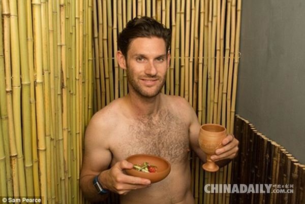 也的確如老闆所說,這家餐廳從食材到餐具再到服務員都保持了最純粹的狀態。餐廳的食物全部是農戶自己種植的。做飯用木柴爐灶,炊具是陶土製作,餐具甚至可以食用。服務員也都裸身服務,不過最隱私的部分還是穿了肉色的內褲外加圍了一圈樹葉,十分有古希臘時期的色彩。在餐廳就餐的食客們全都「坦誠相見」,但是在這種「最自然的」狀態下吃飯,注意一下真的能更多的放在食物上嗎?