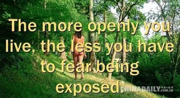 不知道各位看官看完以上見聞有何感想,反正小YUN已經是佩服得五體投地了。小YUN個人認為呢,在裸體活動開始初期,或者是在提議階段,人們的出發點還多是為了追求人性的解脫,放飛一下自我。是呀,在現在工作、學習、生活都面臨重重壓力的當今社會,的確很有必要放鬆一下身心。不被反覆冗雜的服裝、禮儀所束縛,不為服裝搭配而苦惱,不必在乎他人眼光,完全放鬆身心,的確很放鬆很開心。比如為慈善,為了反對恐同……雖然活動的形式是裸體,但是這些活動都是非常有意義,非常美好的。